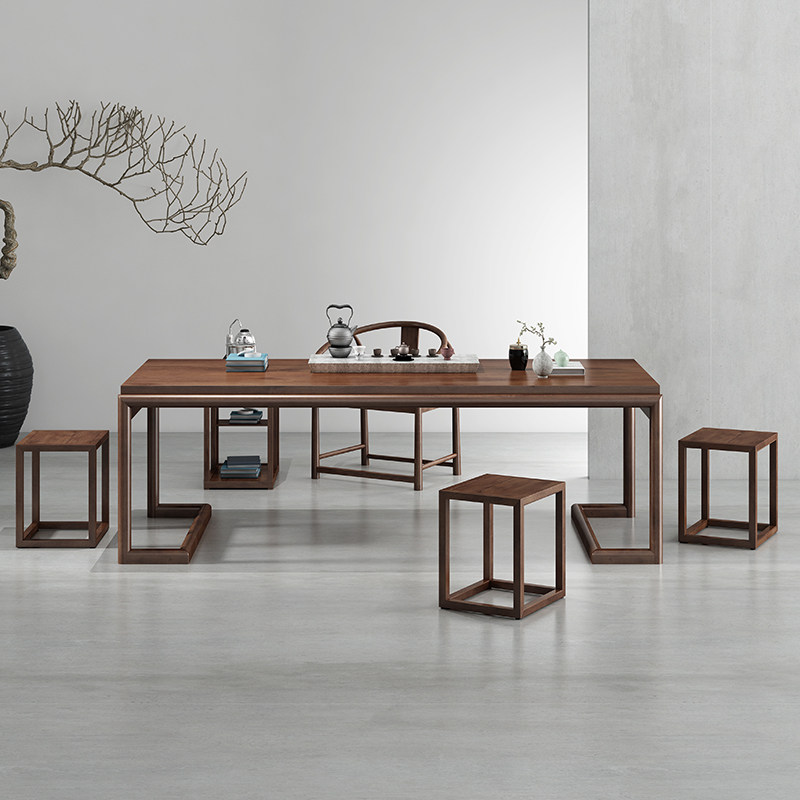 New Chinese style solid wood long table tea table and chair combination Zen long table Kung Fu tea table tea table bubble tea table tea table creative - Taobao