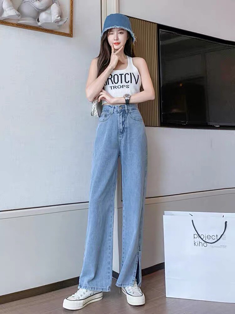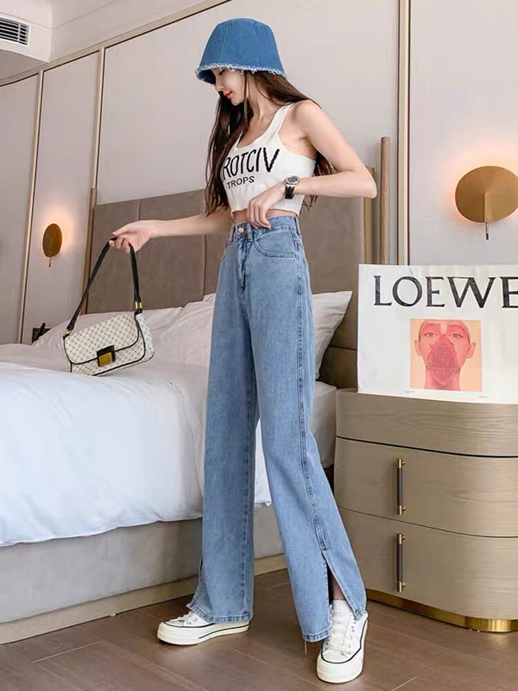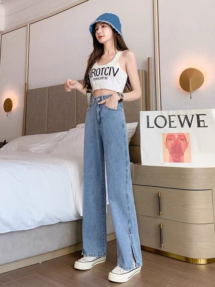 Korean split wide-leg jeans women's high waist drape small 2022 spring and autumn new loose straight-leg mopping pants