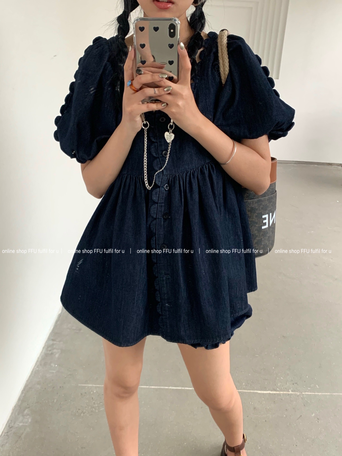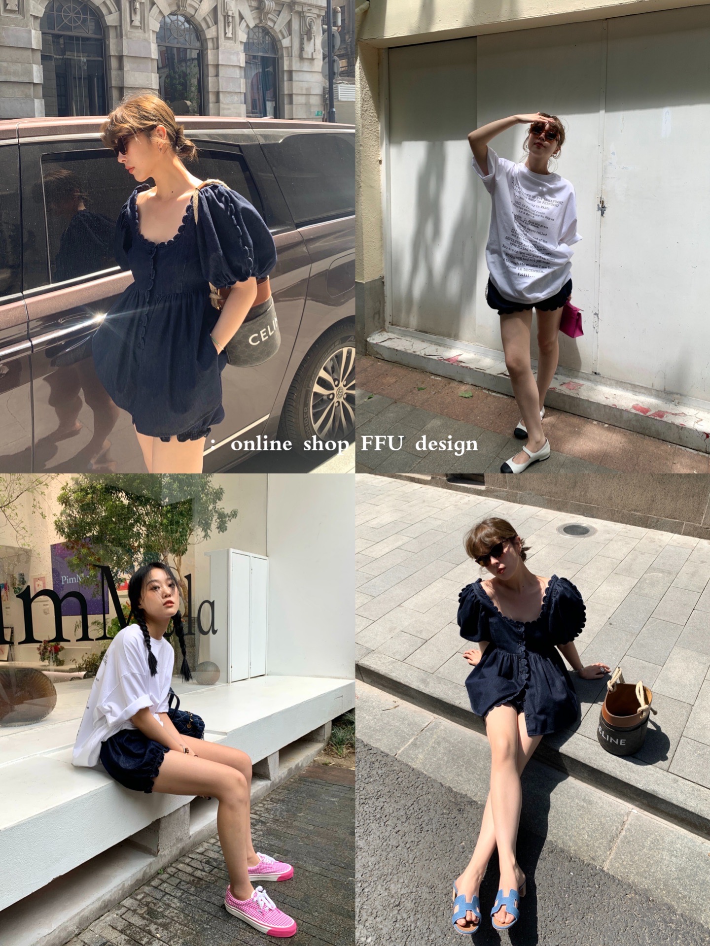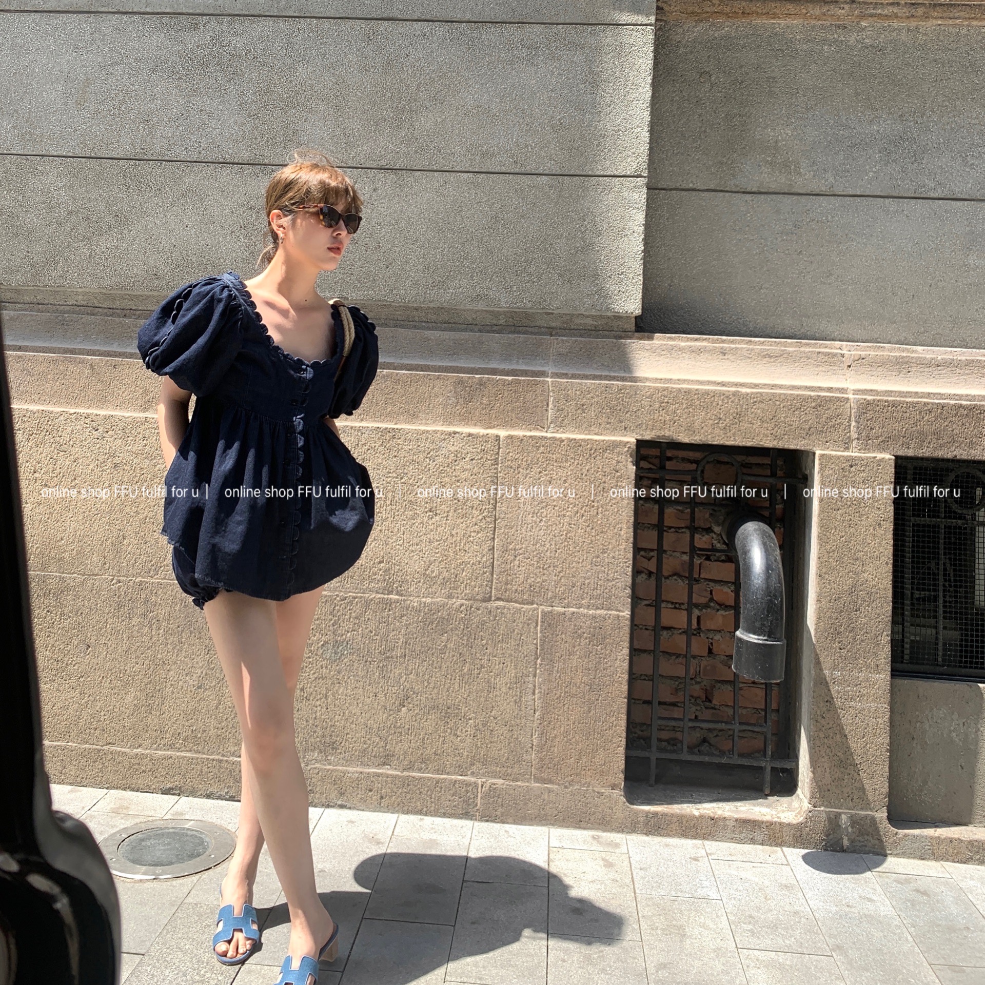 FFU denim suit women's summer new heavy industry design sense niche short-sleeved tops and shorts two-piece QZ