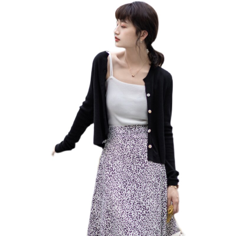 Autumn thin knitted cardigan female V-neck top short black small jacket 2022 new sunscreen shirt air-conditioning shirt
