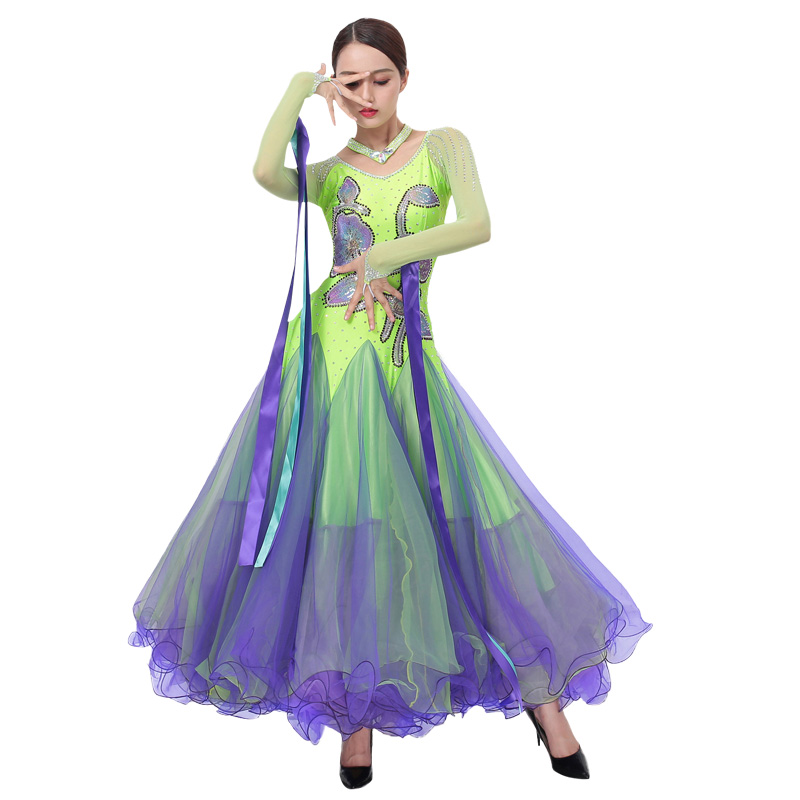 Spring and autumn new dance suit big swing national standard dance performance competition to serve Morden dance social dance performance inlaid drill