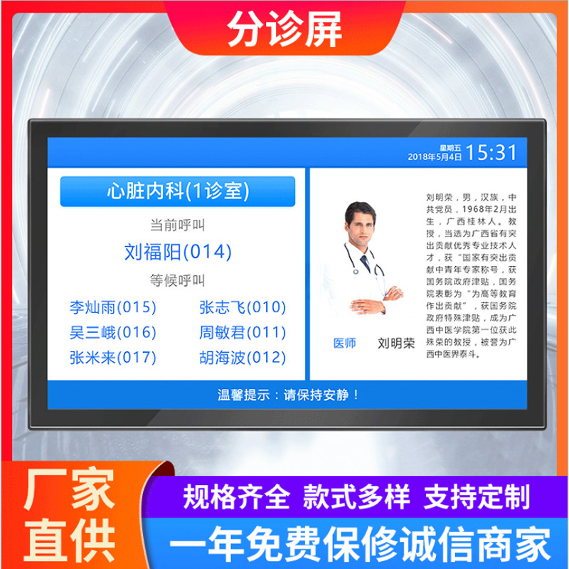 The doctor introduces the number-name hospital queuing and calling system, the display screen of the consultation room, the first- and second-level triage screen, and the guide All