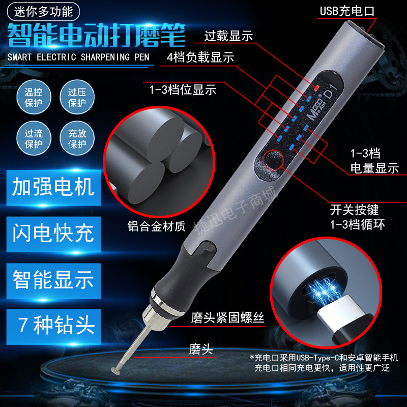 D1 enhanced power grinding pen standard configuration 7 5 grinding heads Separate grinding head 5 grinding heads 2 2 0D pointed 5 D2 standard power grinding pen