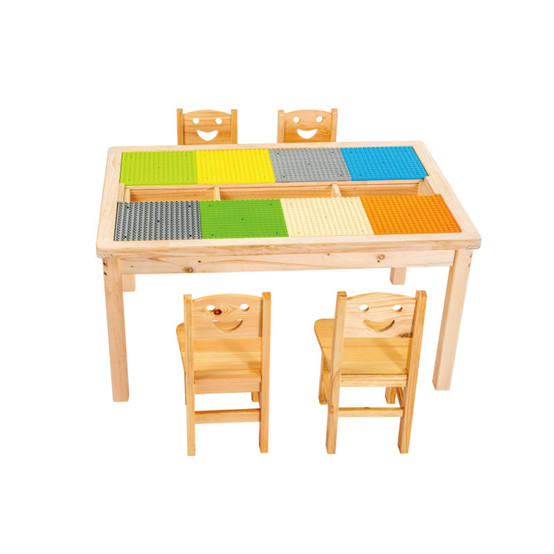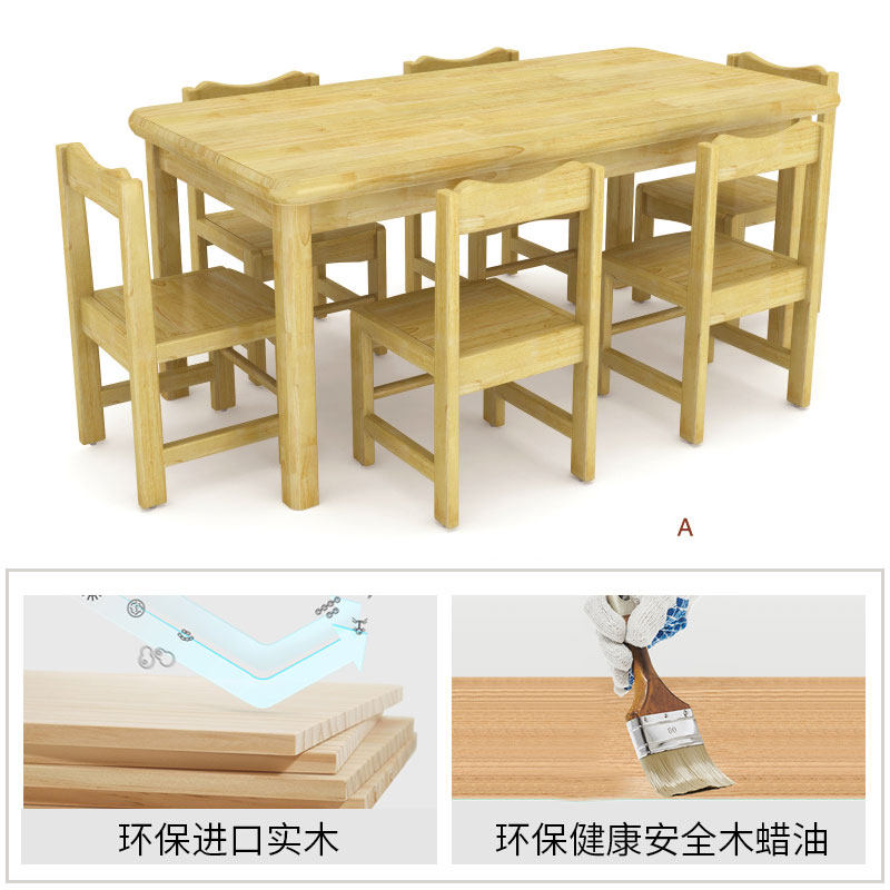 Kindergarten tables and chairs children's reading area toy table solid wood writing and drawing table set rectangular baby seat
