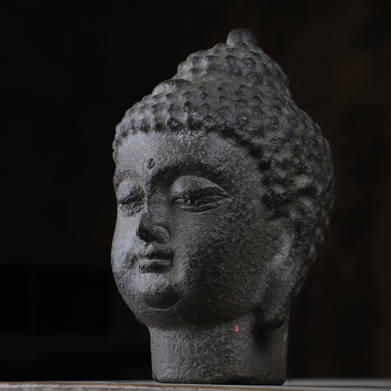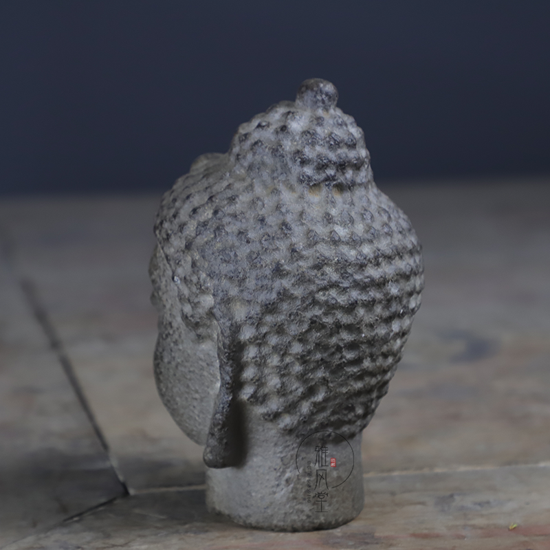 Yavantang ancient method craftsmanship Qingshi stone sculptures antique made of old weathered leather Carmonian Buddha head Chinese swing piece decoration