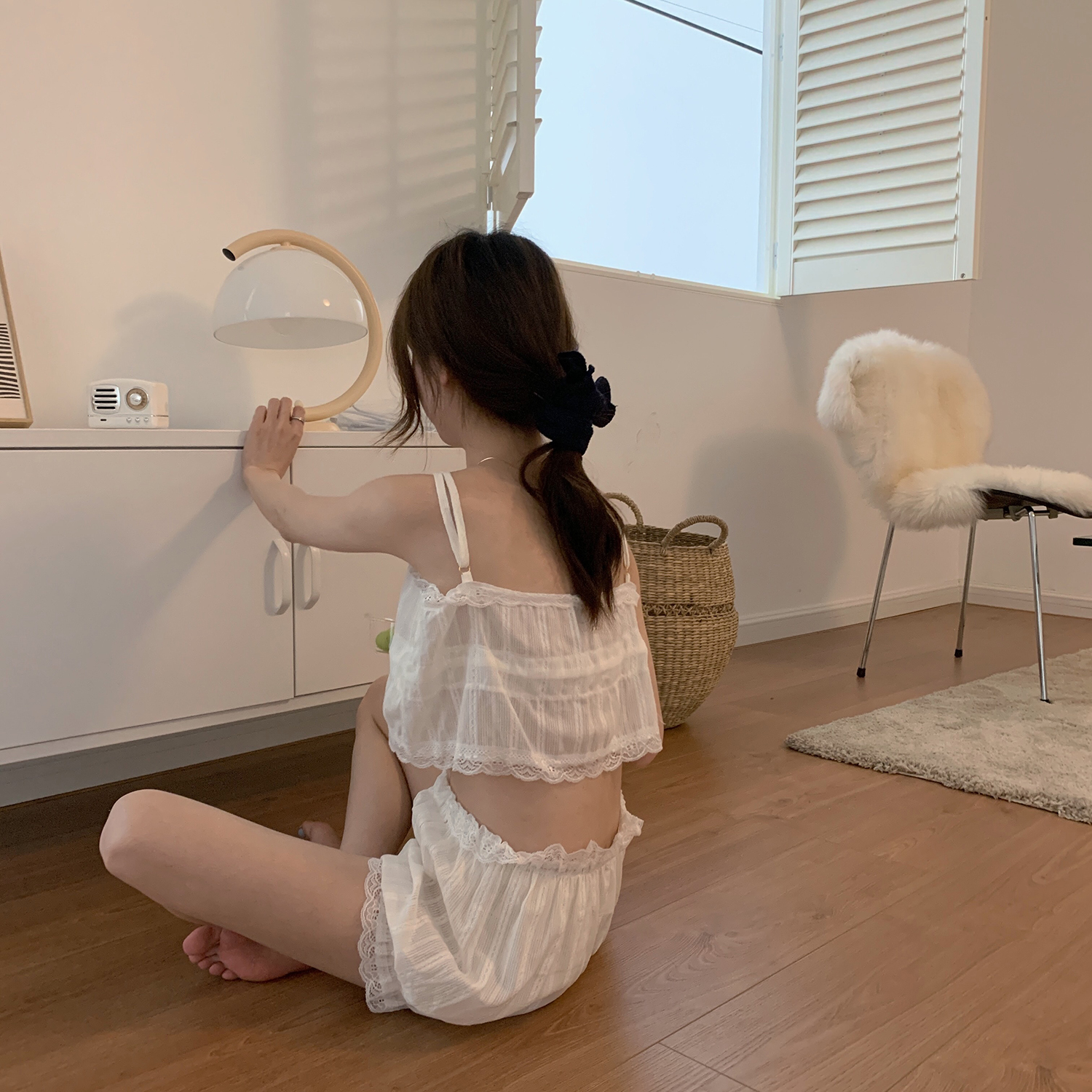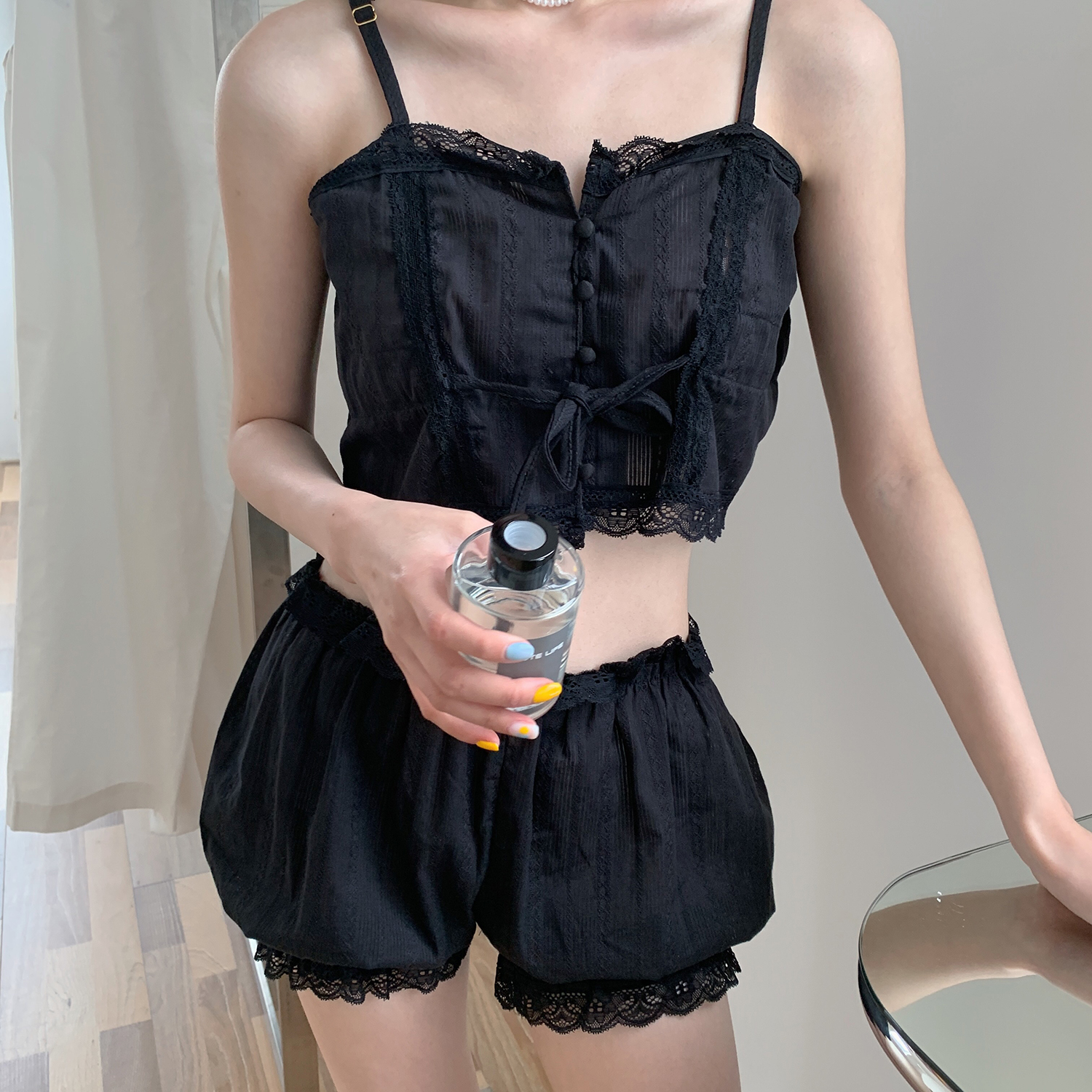 VIRRI CIAGA French sweet lace cotton camisole vest high waist wide leg pajamas women Summer Suit