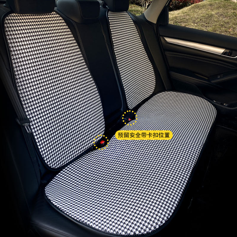Car seat cushion four seasons universal linen female cartoon cute houndstooth three-piece set ventilation and breathable car single-piece cushion