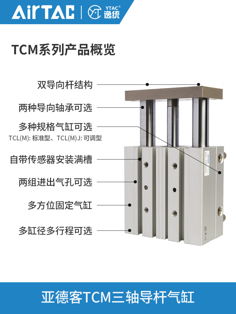 Yade passenger three-axis three-rod cylinder TCM50 63X25X50X75X100X150X200S high precision original