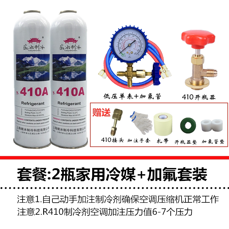 1 bottle of Cool Ao Huibing 410a refrigerant 1 bottle of Cool Ao Huibing 410a + fluoridation set 2 bottles of Cool Ao Huibing 410a + fluoridation set 3 bottles of Cool Ao Huibing 410a + fluorine set frequency conversion and frequency fixing fluorineation tool Warranty for one year Please use R134a 339 bottle opener