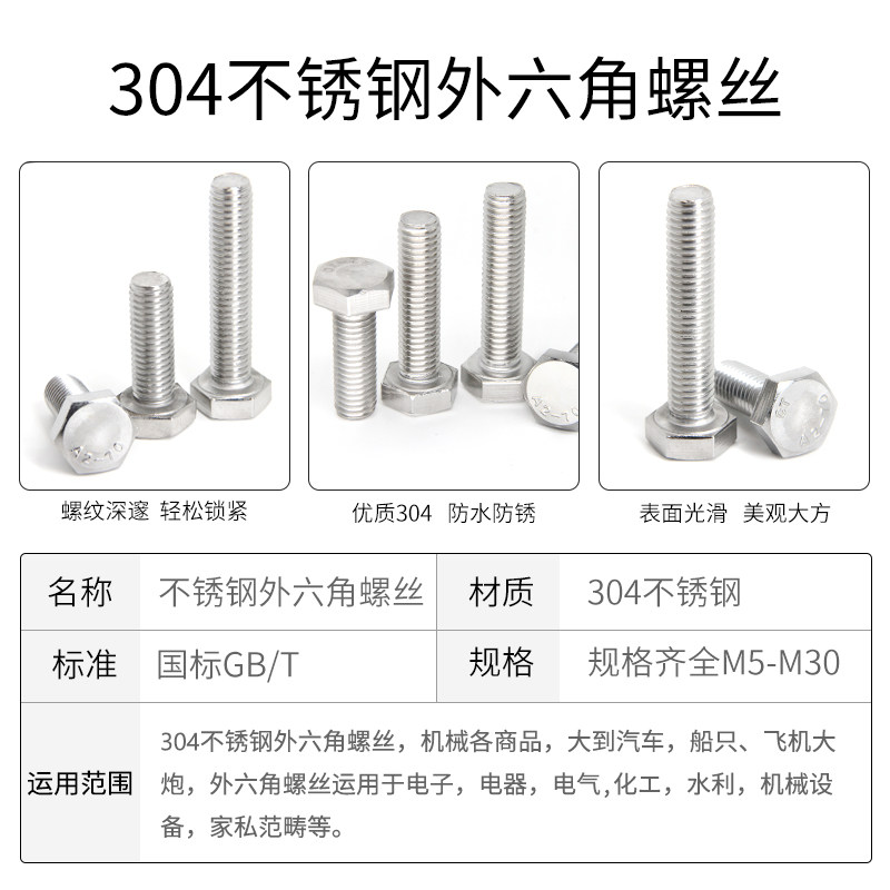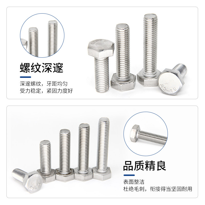 M24M27M30 outer hexagonal 304 stainless steel full tooth bolt lengthened screw screw Daquan 50 60 70