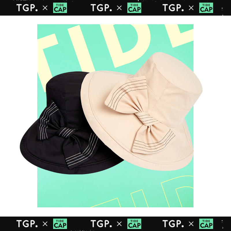 TheGreenParty Korean version spring and summer sunscreen butterfly knot wide eatery fisherman hat sunhat