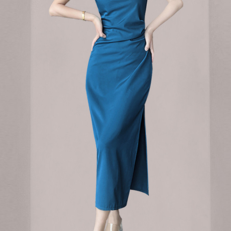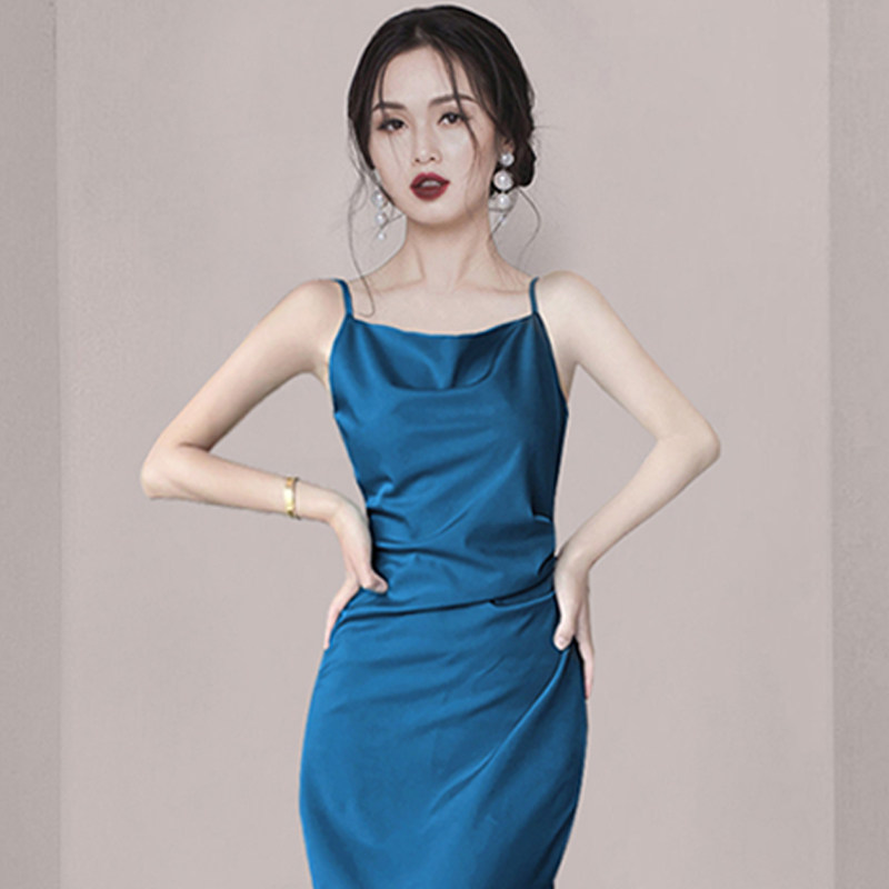 The temperament of famous Yuan hangs a word shoulder dress in 2022 new sister wind repair bag dress dress
