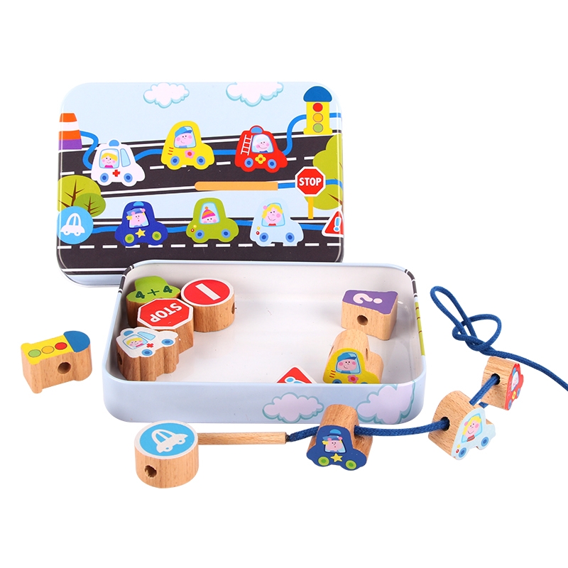 Children string jewelry toys baby wear bead diy hand wood block toys 1 - 3 - 6 years old boy and girl