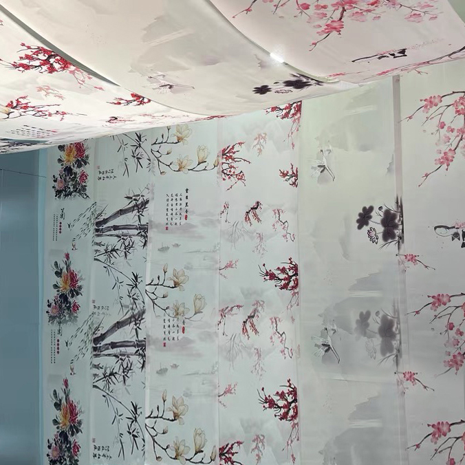 Custom Yarn Mantle Decoration Waterproof Fabric Wedding background overhanging ceiling Ceiling Red Gufeng Wedding Roof Live cloth Mantle Flutter