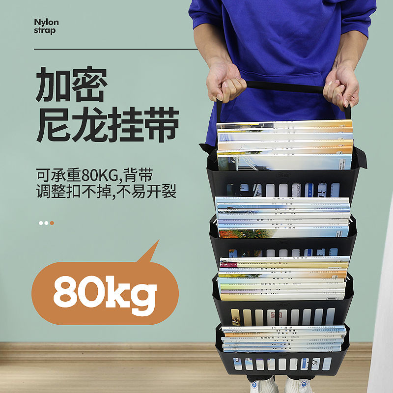 Hanging book basket-green hanging book basket-black black - (5 floors)-(minimalist) pure black - (13 floors)-(thickened Oxford cloth coarse hanging with large back pocket) struggle - (13 floors