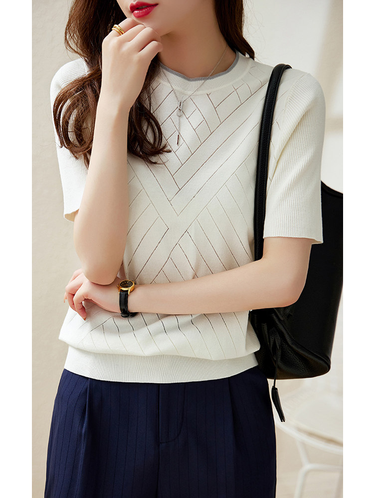 Modern Mei cavity conditioning Fan hollowed top ear ice wire knitted shirt and short - sleeved niche design