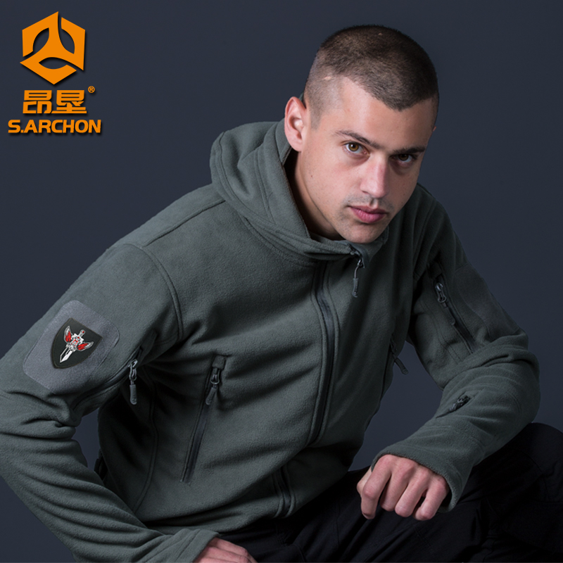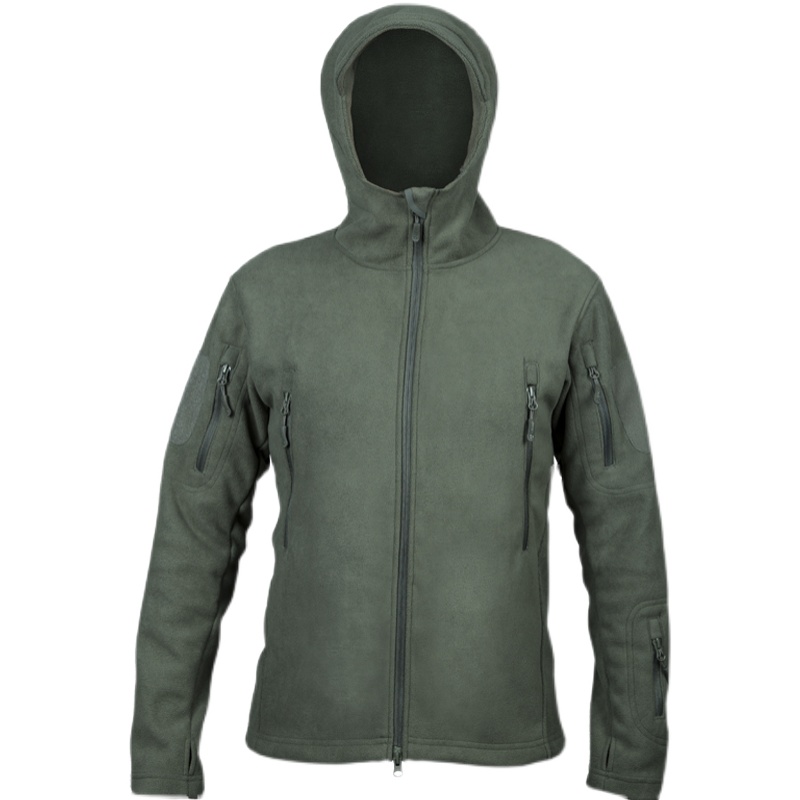 Spring Outdoor Lianhood Catch Suede Jersey Men's Double Face Shake Grain Flannel Jersey With Hat Tactical Warm Jacket Submachine Clothing Liner