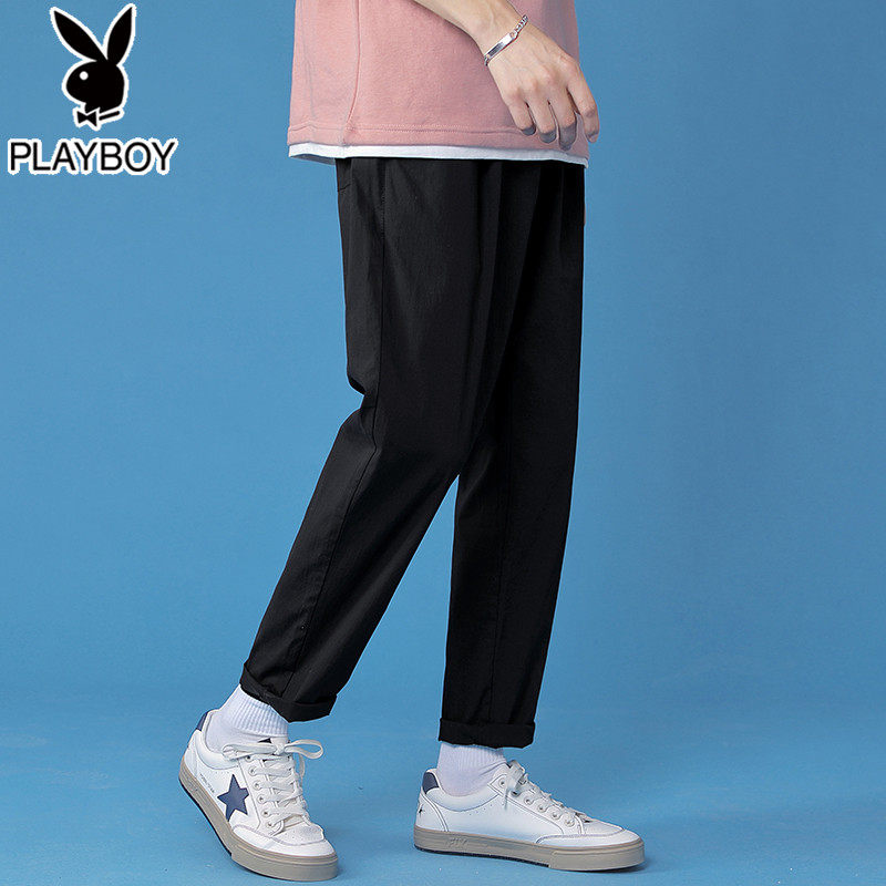 Playboy plain ice silk casual pants men's tide brand loose straight trend summer thin long trousers men