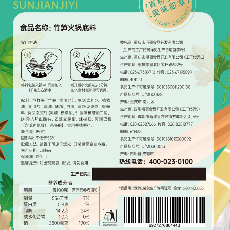 Mao Ge Bamboo Shoots Hot Pot Base 150g Shabu Shabu Seasoning Small Hot Pot Fragrant Slightly Sour Bamboo Shoots Flavor Seasoning