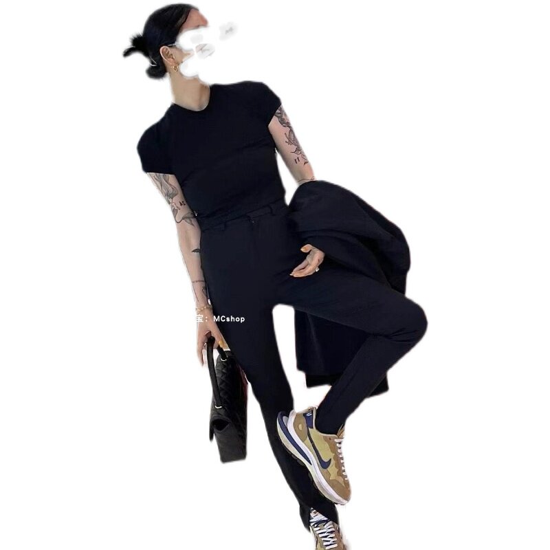 T - shirt 2022 Korea Backlayer Slim Basic High - waist Roll - neck Short - sleeved Short Color Coat