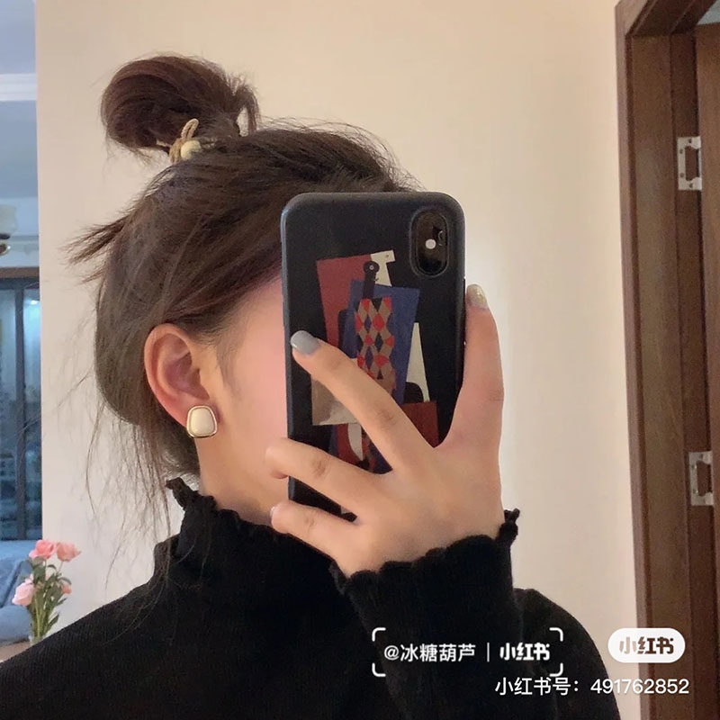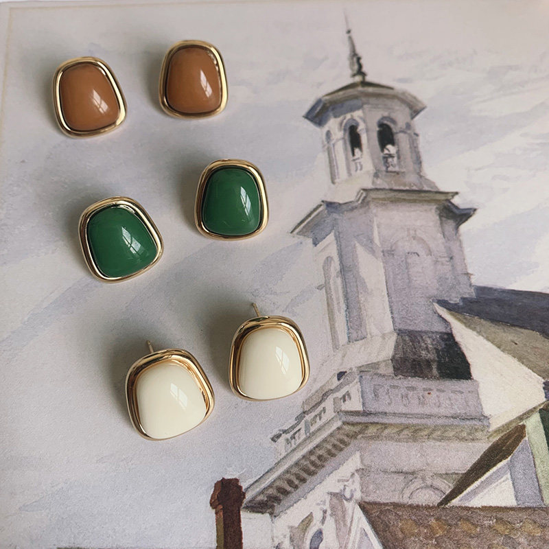 Milky white 925 silver needles (with pierced ears) Milky white spiral ear clips (without pierced ears) Khaki 925 silver studs (with pierced ears) Forest green 925 silver earrings (with pierced ears)