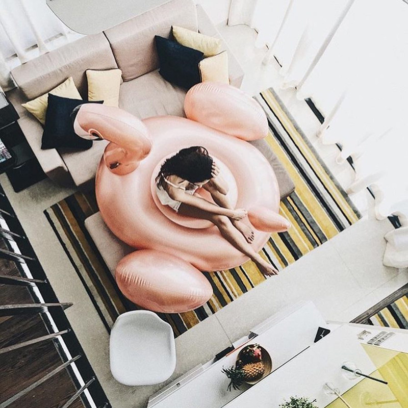Free electric charging large rose gold flamingo water inflatable mount floating floating bed floating row swimming equipment swimming ring