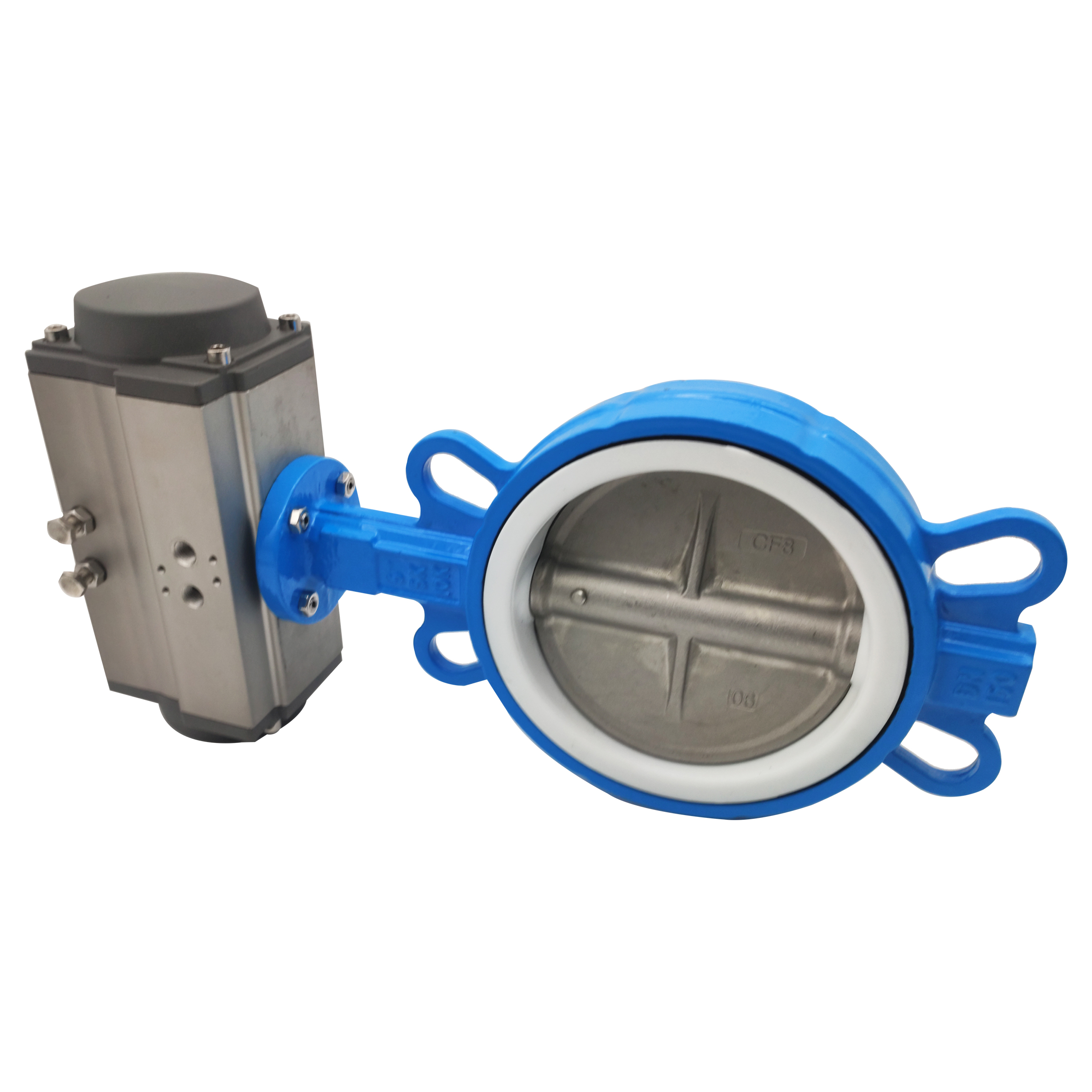 Pneumatic butterfly valve D671F-16Q corrosion-resistant acid and alkali 304 plate pneumatic paired tetrafluoro butterfly valve DN50 65 80