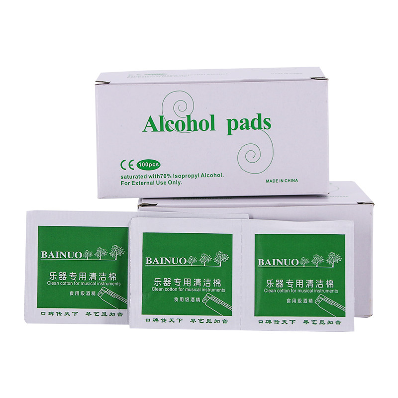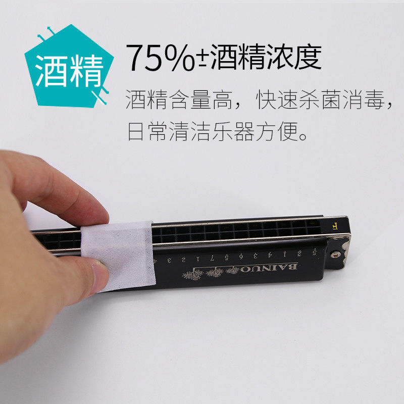 100 slices of alcoholic cotton sheet disposable sterilized cotton harmonica Harmonica Flute organ instrument 75%-degree travel Clean wipe