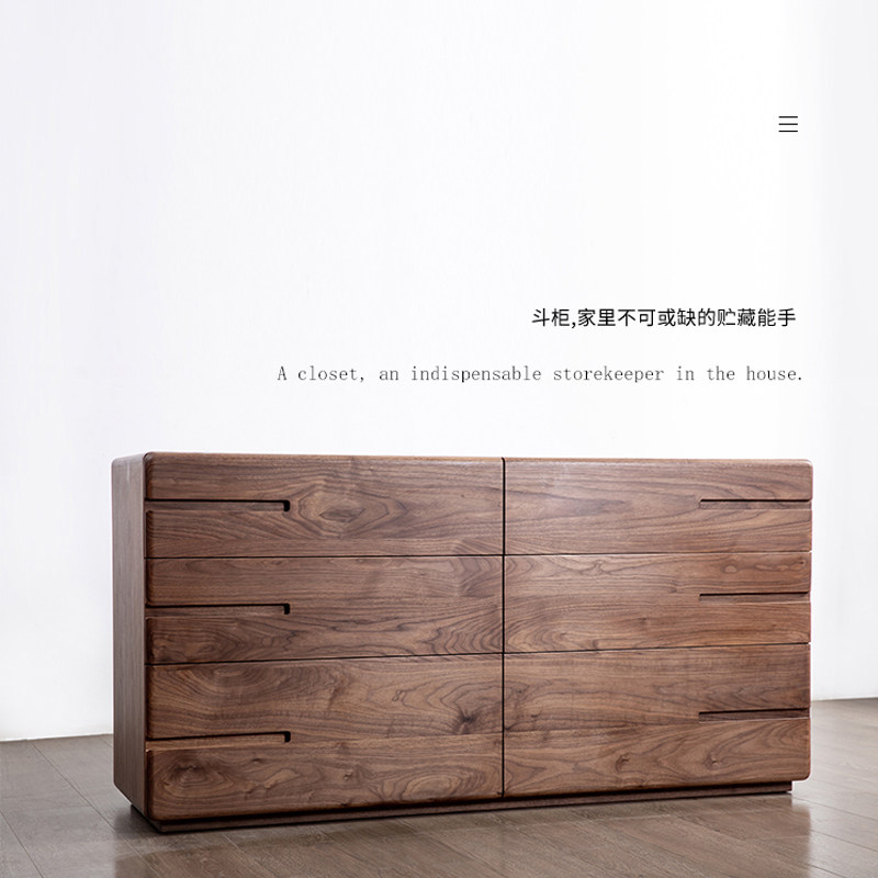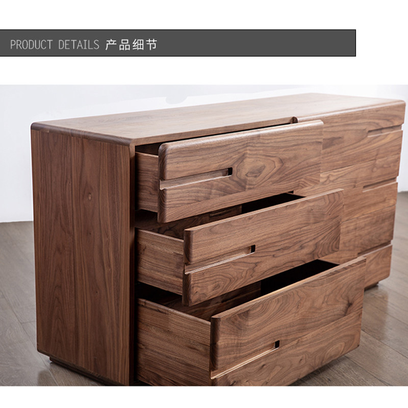 Nordic Full Solid Wood Six Bucket Cabinet Black Walnuts Wood Bedroom Living Room Large Side Cabinet Lockers Genguan Cabinet-Taobao