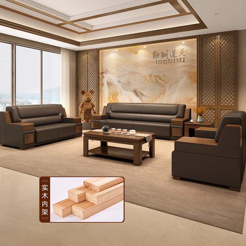 Office sofa big business reception hotel reception three people Chinese conference leather office sofa combination