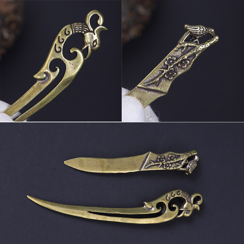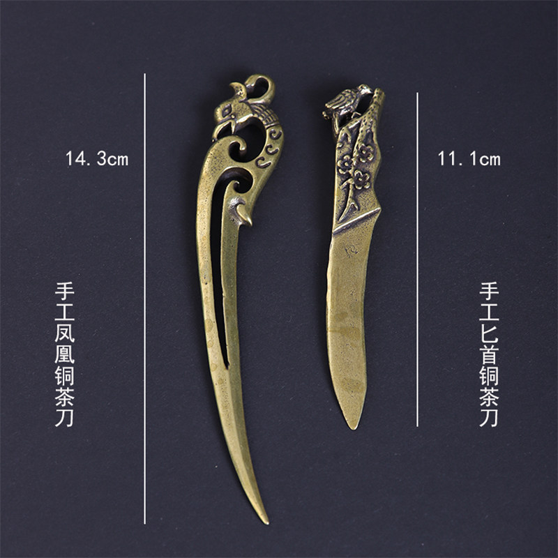 YHJ hand - made phoenix copper tea needle retro Pu - taper tea knife tea cookie kung fu tea ceremony accessories