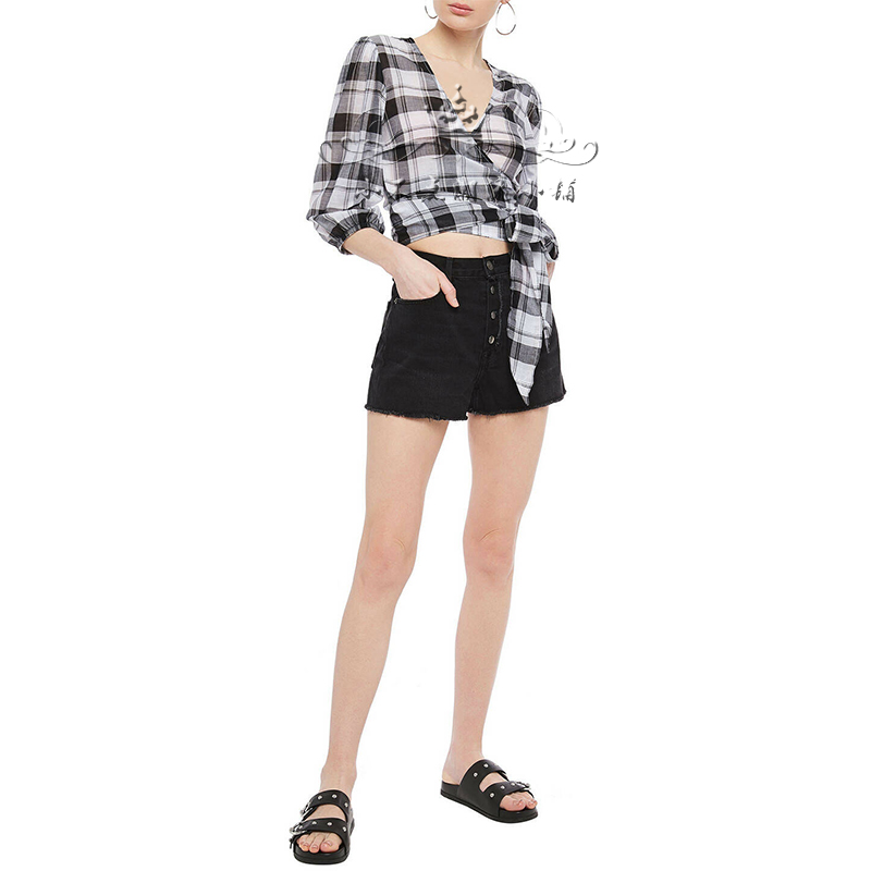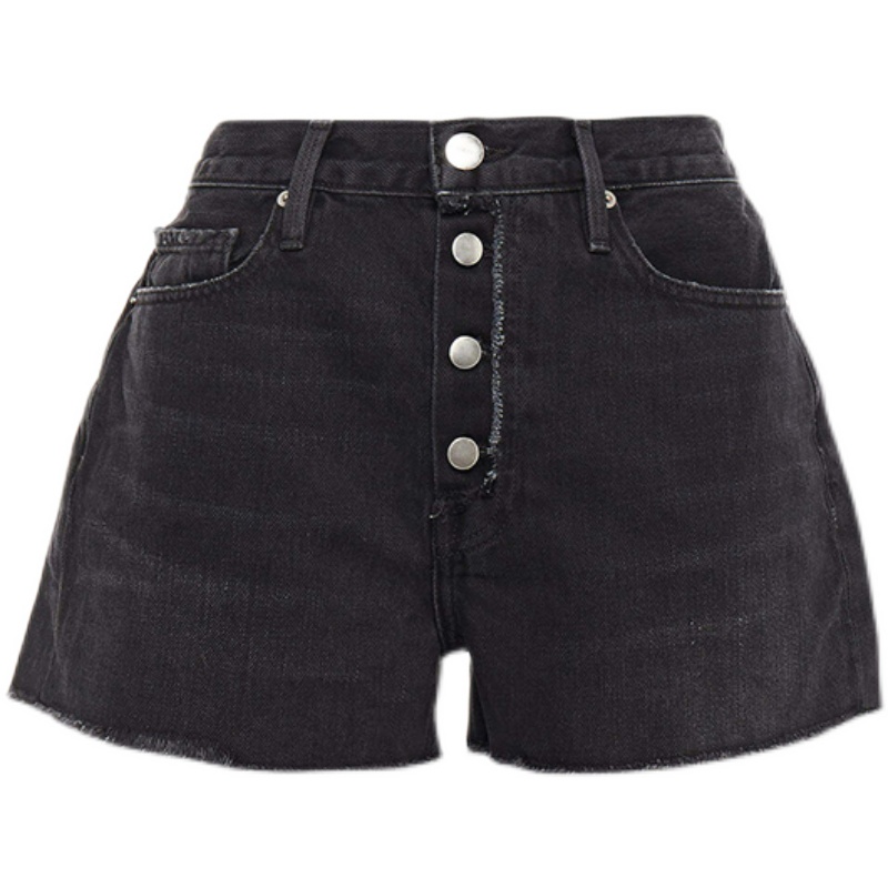Frame Denim denim shorts women's summer high waist breasted raw edge three points black and gray hot pants are thin