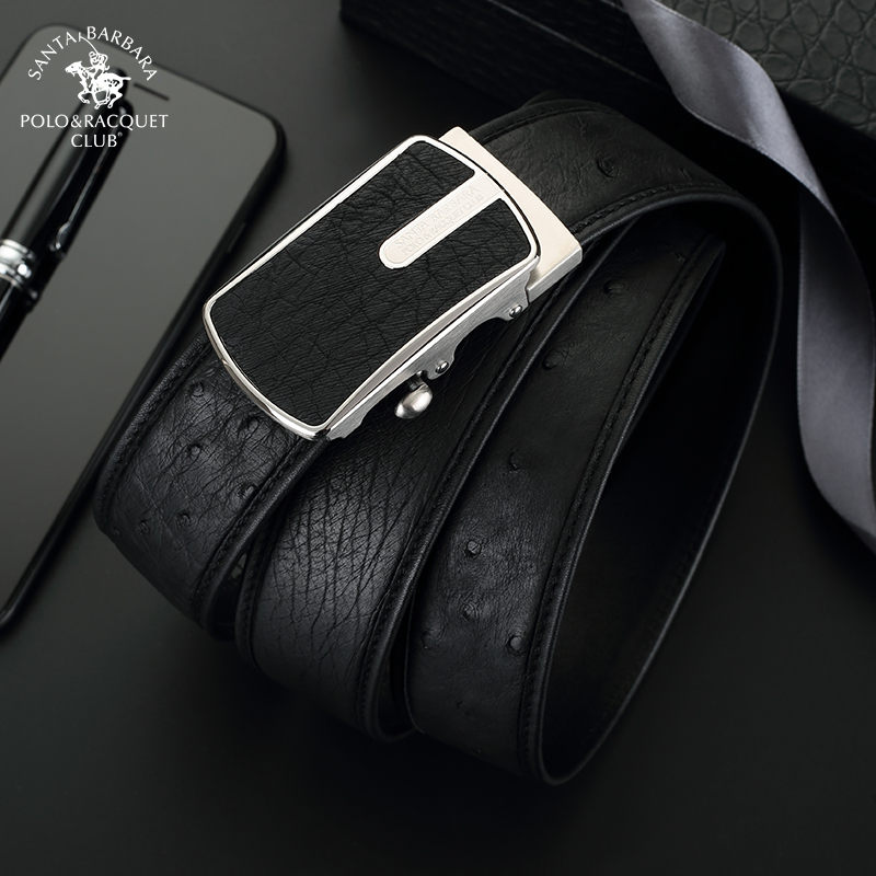 St Grand Paolo Ostrich Skin Leather Men Belt Genuine Leather Business Automatic Button Trendy Casual Upscale Pants Belt