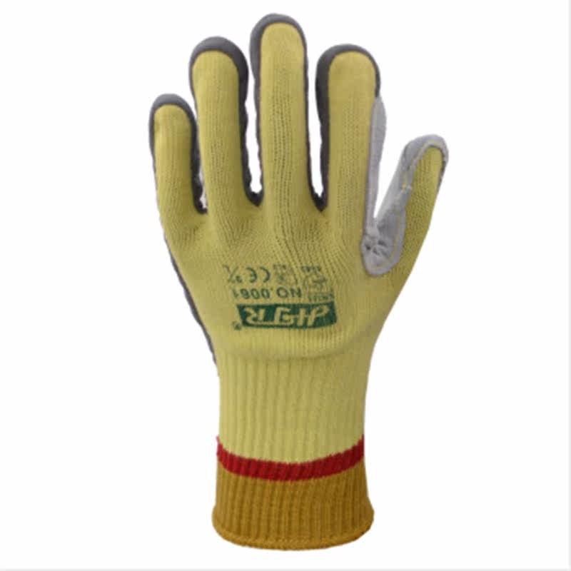 Haitaier 0061 skin 5 grade anti-cut gloves thick anti-slip rubber wear-resistant anti-slip operation labor protection cowhide
