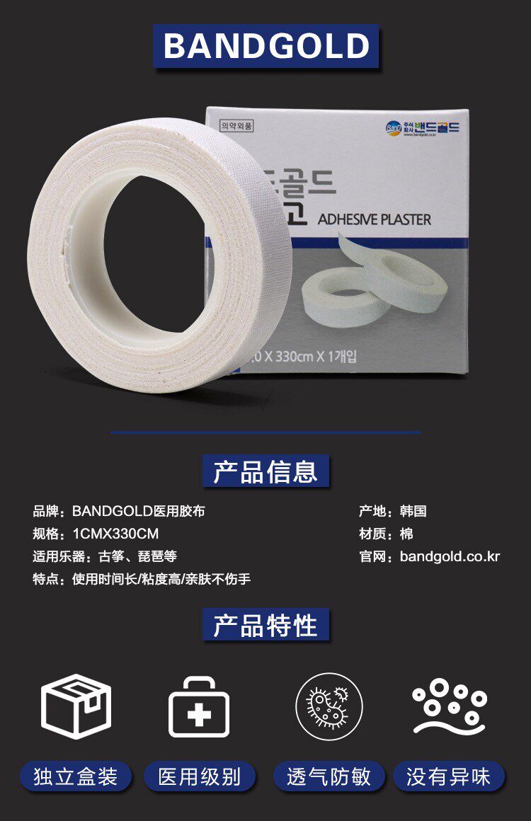 South Korean medical grade bandgold guzheng pipa rubberized fabric professional performance verification exam adhesive tape child breathable not to stick