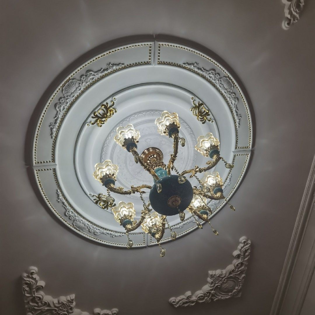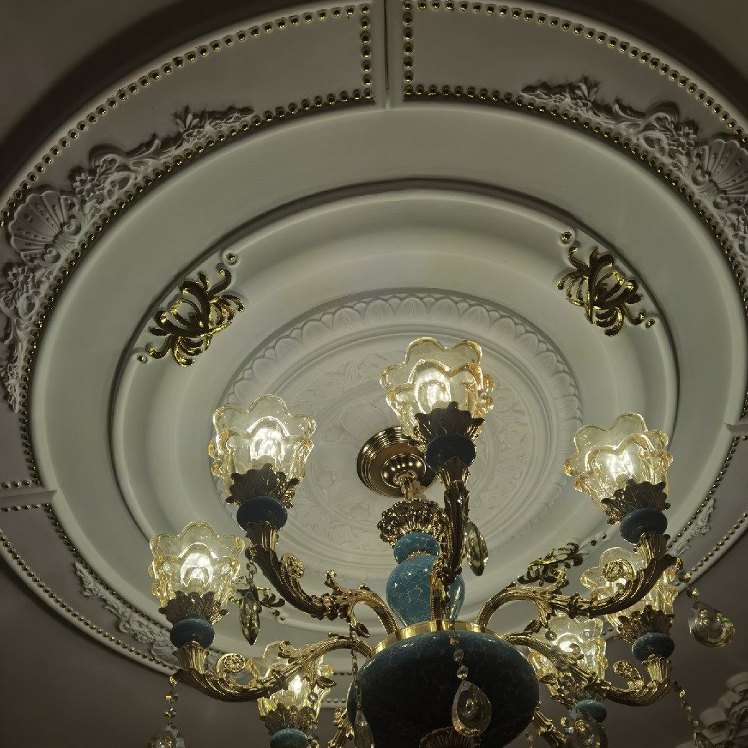 Fao-style lavish villa with two floors living-room plaster ceiling suspended ceiling line 1 5 m imitation PU lamp tray