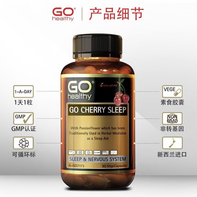 New Zealand GO healthy high source cherry sleep tablets relieve stress and help sleep essence 90 tablets shipped in Australia