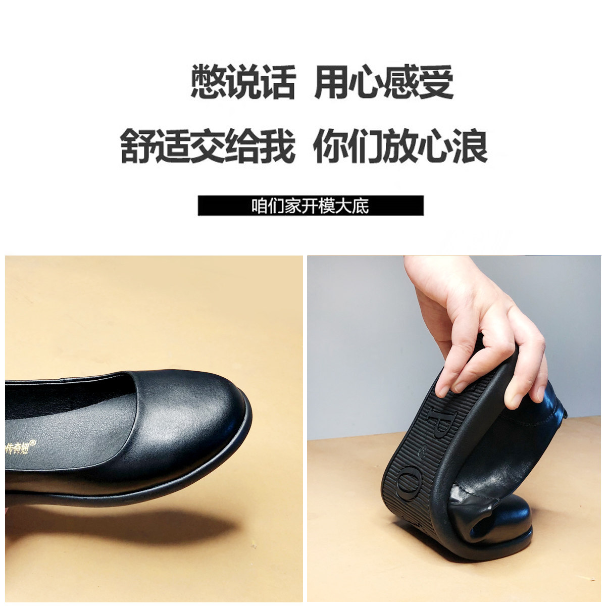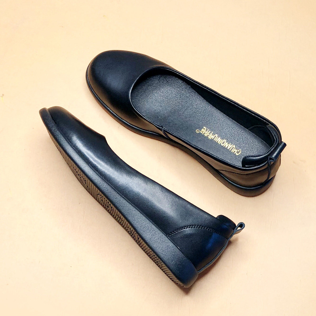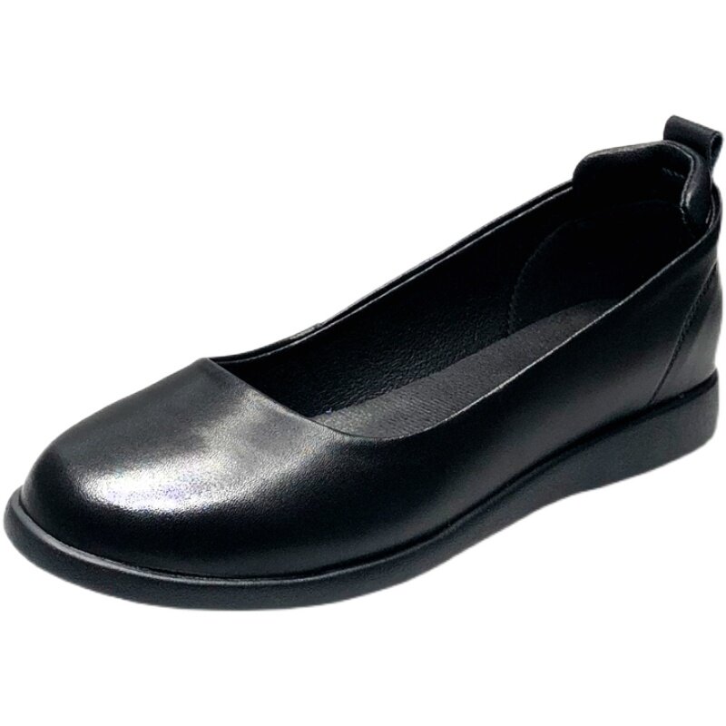 Work shoes women's black leather shoes soft bottom summer professional women's shoes flat single shoes stewardess shoes hotel long standing without tired feet