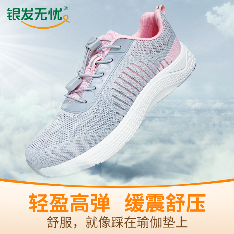 Silver hair without worry ultrahydrogen flying walking women shoes middle-aged people casual shoes mommy shoes light breathable soft