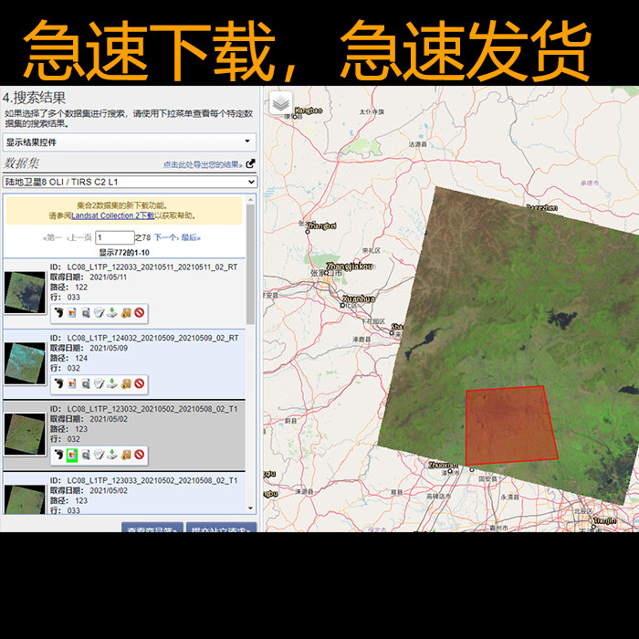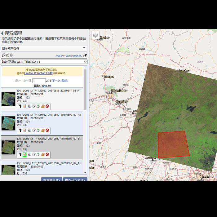Download of the Landsat data by the USGS data Download
