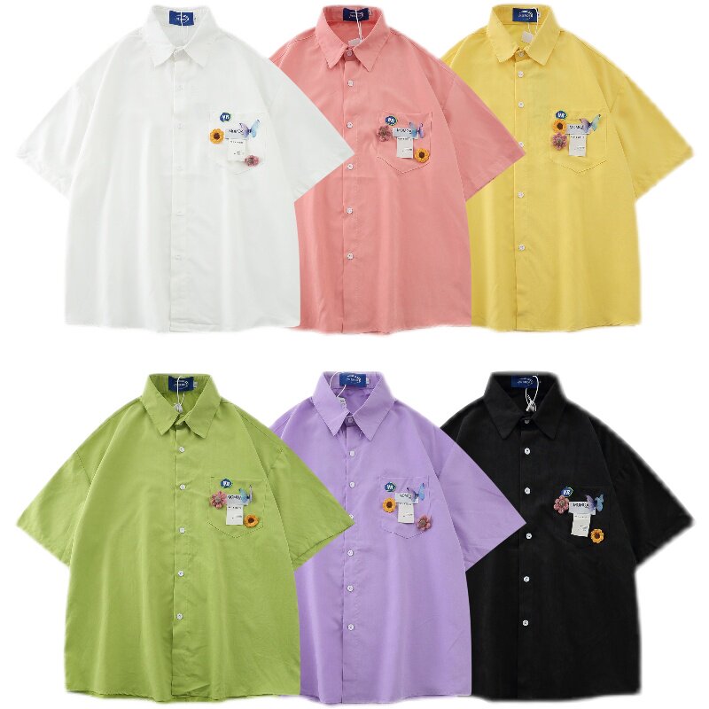EAHOearthlinghoo 22SS Japanese and Korean candy-colored street loose Korean version all-match short-sleeved shirt for men and women
