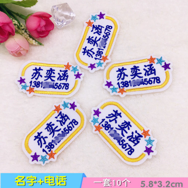 Child Name Cloth Patch Can Sewn Kindergarten Embroidery Large Overtime Class Telephone Bedding Name Sticker Can Be Scalable Water Washable