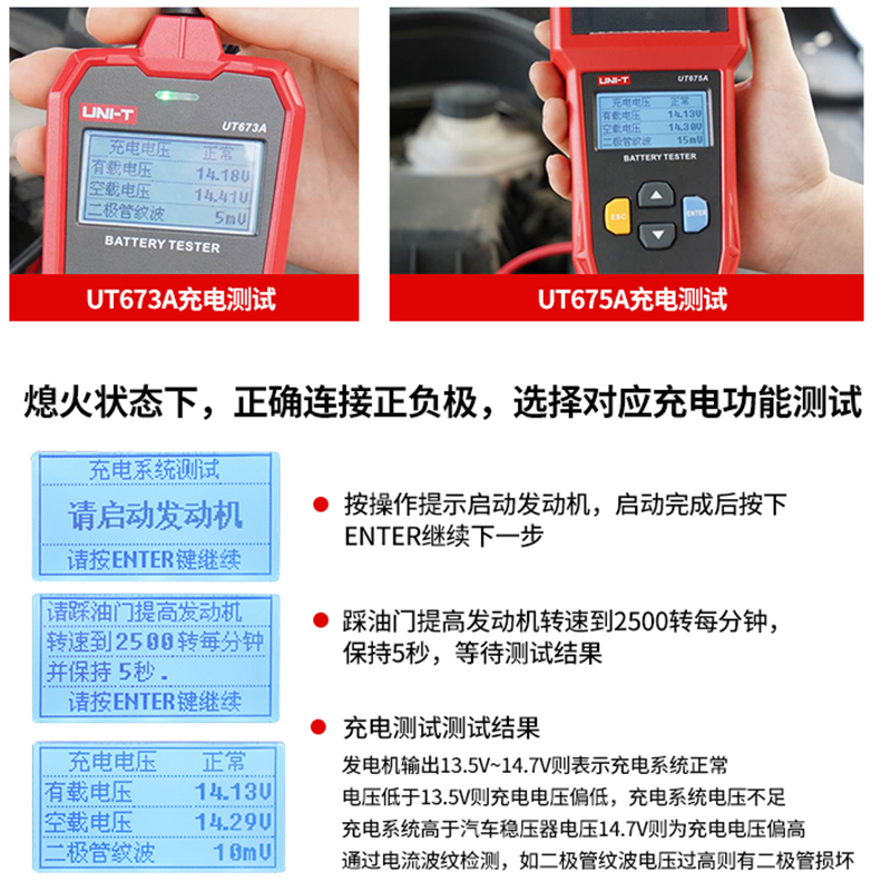 12V 12V 24V General storage battery tester Professional version UT673A 12V 24V General storage battery tester Professional print edition UT675A