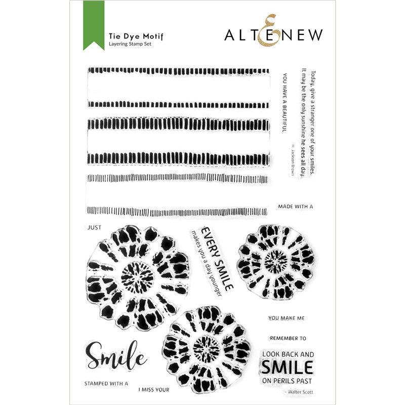 Altenew Tie Dye Effect Pattern and Smile Words Tie Dye Motifs Import Clear Stamp