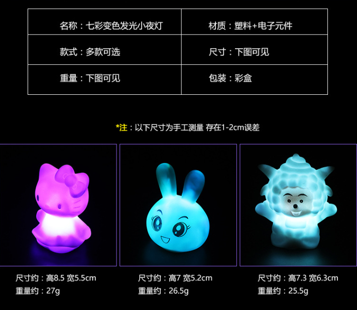 Luminous small night light ferrule toy 7-color LED small night light discoloration Children's holiday gift night city square hot sell