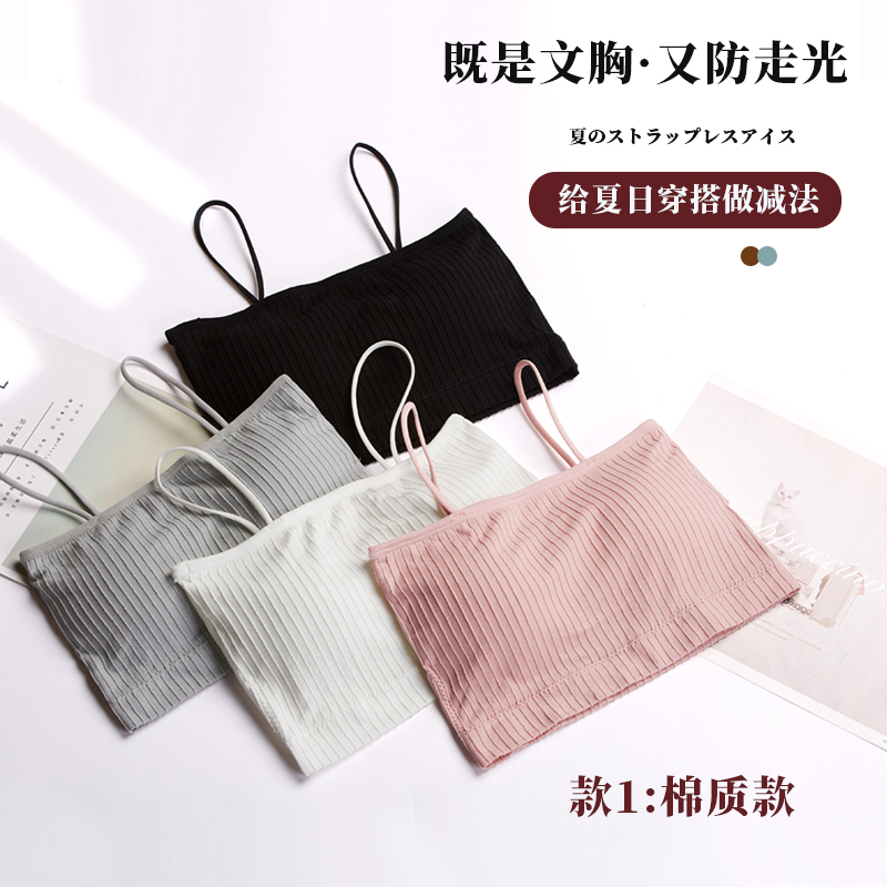Ice Silk Scarless Underwear Schoolgirl High School Teenage Girl Smear Anti-Walking Light Harness Beauty Vest Style Wrap Chest Thin summer