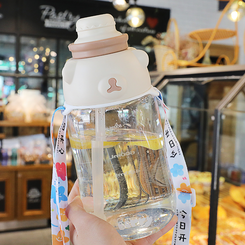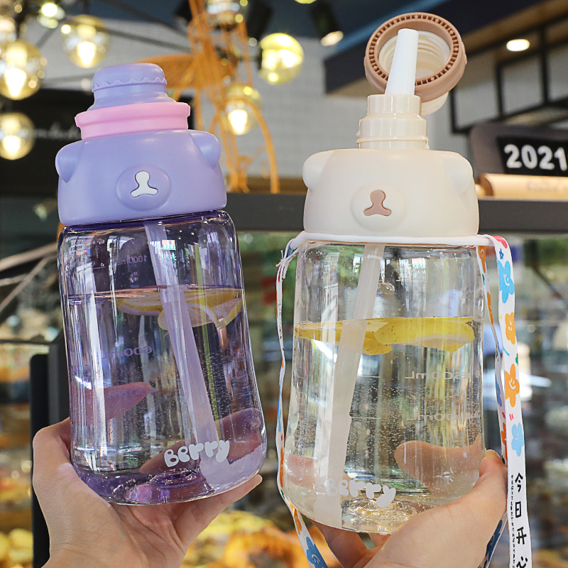 High face value straws water glasses Summer girls 1500ml large capacity cups portable students creative super cute plastic cups