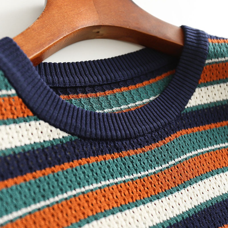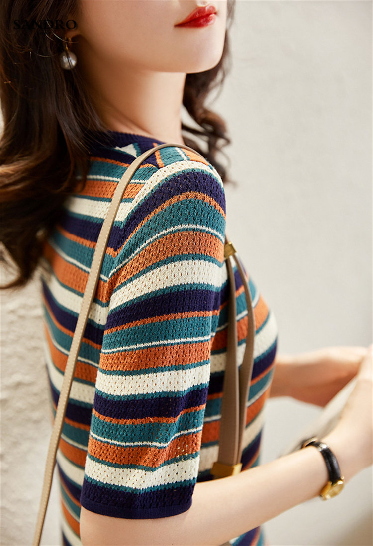 Japanese light luxury colorful striped knitted dress women 2022 summer new hollow round neck slim slim skirt