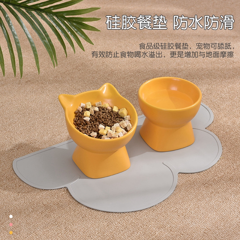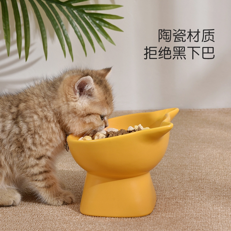 Cat Ears Ceramic High Foot Cat Bowl