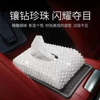 Car tissue box living room light luxury high-end Pearl car sanitary carton goddess Net red car ornaments advanced sense